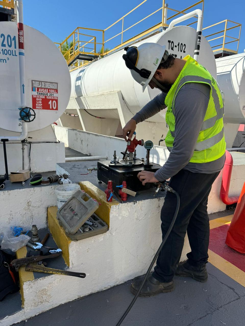Ensaios em tanques aéreos e tubulações para identificar vazamentos e assegurar a integridade do sistema de armazenamento.